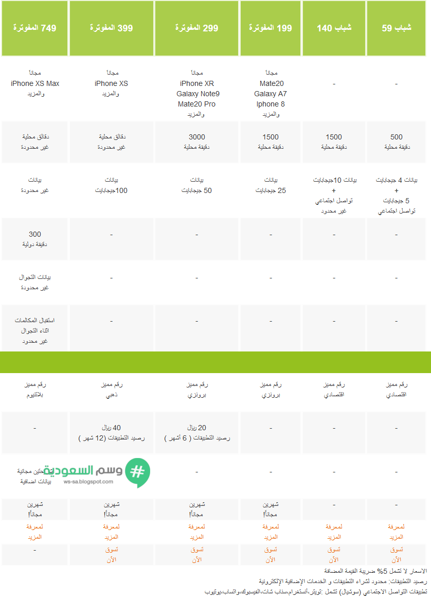 بجدول مبسط نضع لك مقارنة أسعار شركات الاتصالات في السعودية الباقات المفوترة مسبقة الدفع باقات الاتصال والإنترنت العروض والتخفيضات