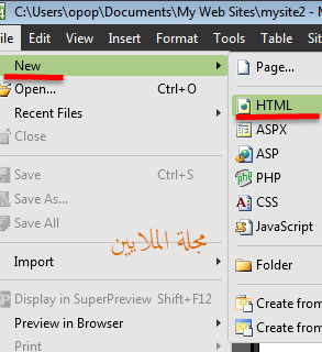 انشاء موقع جديد Microsoft Expression Web 4 واجهتي للعالم أفاق عربية