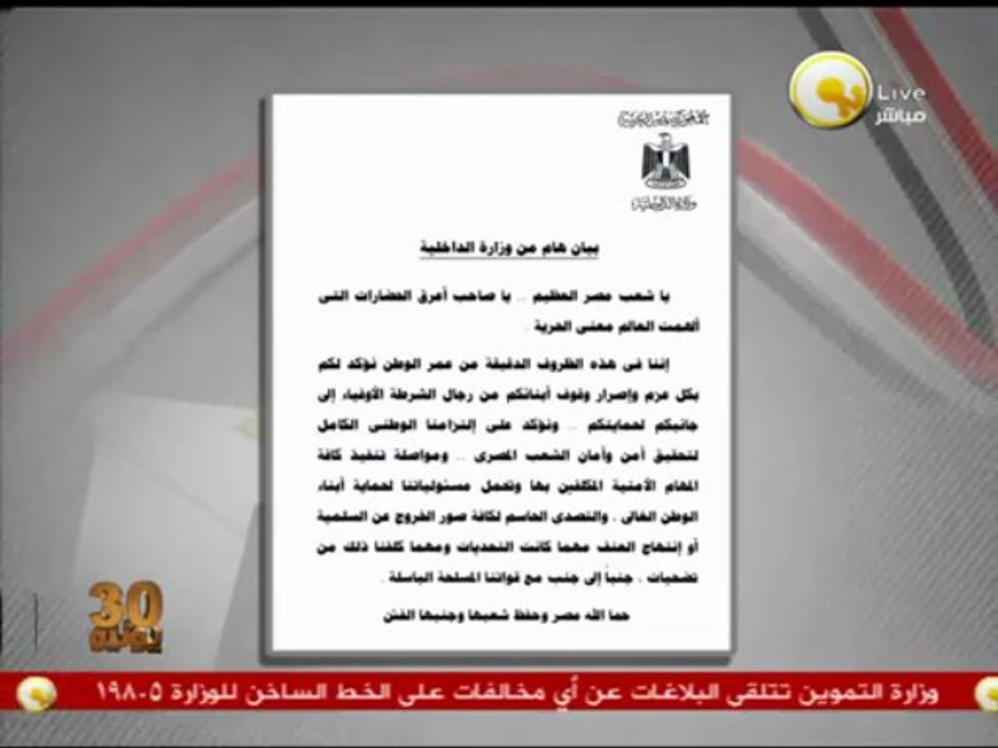 بيان وزارة الداخلية للتأكيد على إنحيازها لحماية الشعب المصري Video Dailymotion