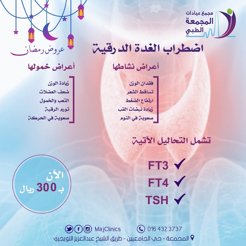 مجمع عيادات المجمعة الطبي On Twitter عروض رمضان تحليل الغدة الدرقية الكاملة Ft3 Ft4 Tsh بـ ٣٠٠ ريال فقط عيادات مختبر المجمعة