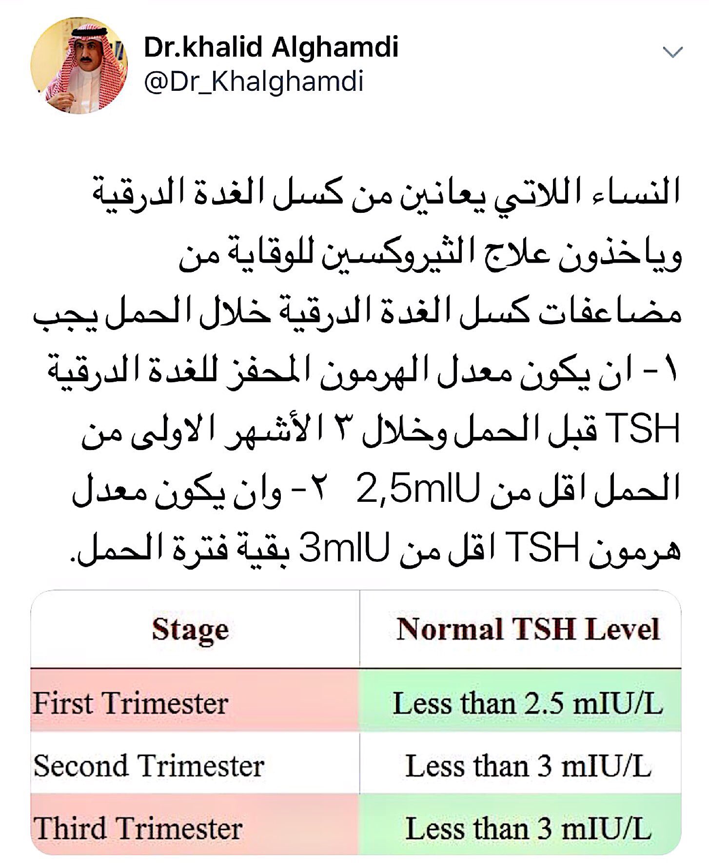 O Xrhsths Dr Khalid Alghamdi Sto Twitter سؤال ٢ هل نسبة الهرمون المحفز للغدة الدرقية 2 9 وانا حامل في الشهر الثاني وأخذ جرعة 50 تكفي ولا تحتاج زيادة نعم ولكن في نهاية الشهر الثالث من