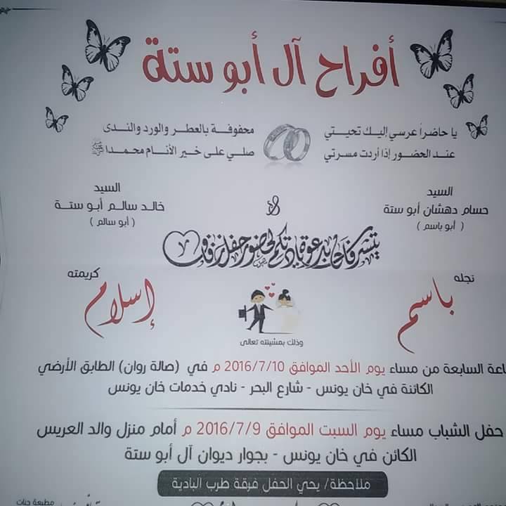 موقع عائلة ابوستة تهنئة بالزواج من الشاب باسم حسام دهشان ابوستة
