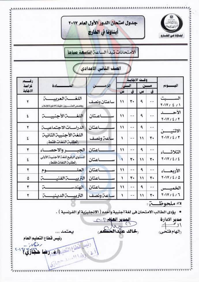 ننشر جدول امتحانات منتصف العام للصف الأول الثانوي للمصريين بالخارج صور القاهرة 24