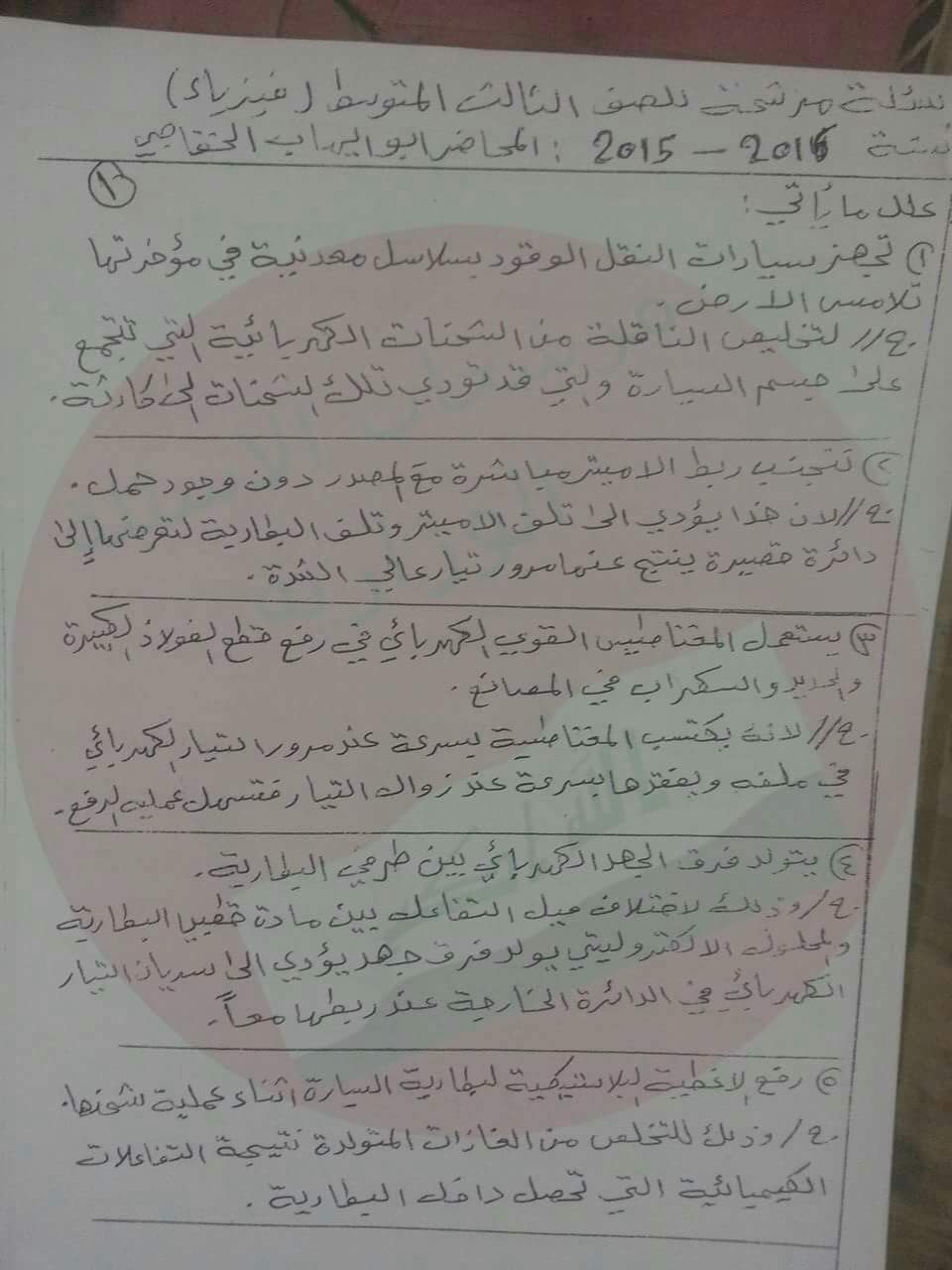 حلول جميع مسائل الفيزياء للصف الثالث متوسط للعام 2015 2016 للاستاذ عبدالسلام محمد