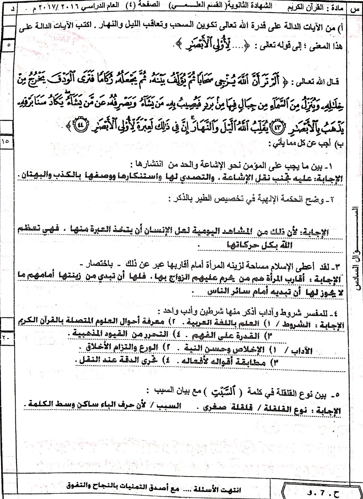 قران النموذج الرابع حلول نماذج اختبارات وزارية اليمن ثالث ثانوي ملخصات الثانويه العامه في اليمن