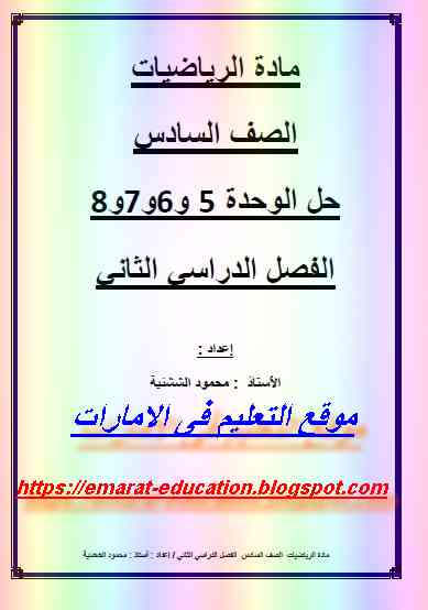حلول رياضيات الصف السادس الأساسي الفصل الثاني الوحدة الرابعة والخامسة سوريا مكتبة الفريد الإلكترونية