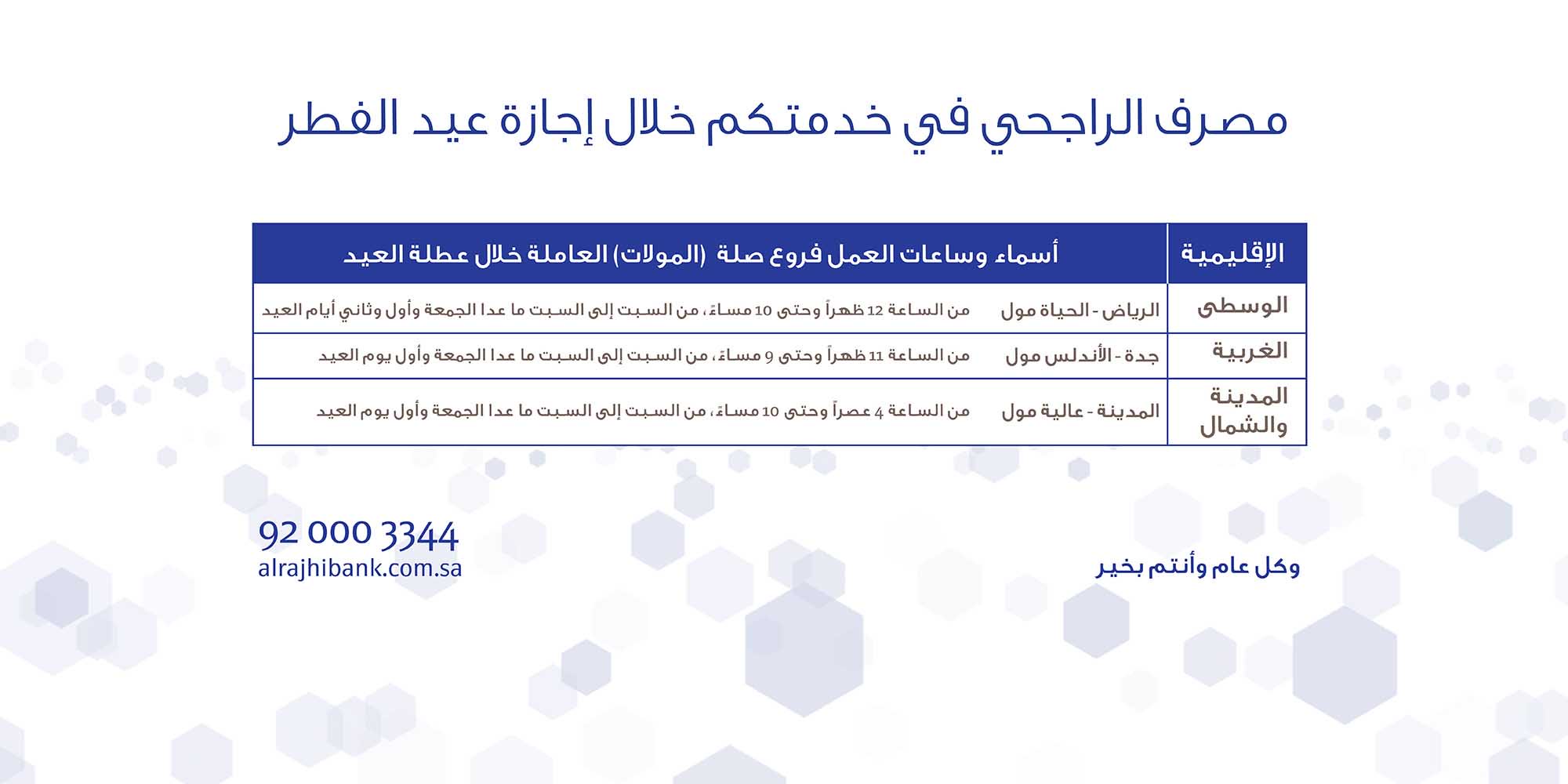 اوقات عمل الفروع خلال إجازة عيد الاضحى Al Rajhi Bank مصرف الراجحي Facebook