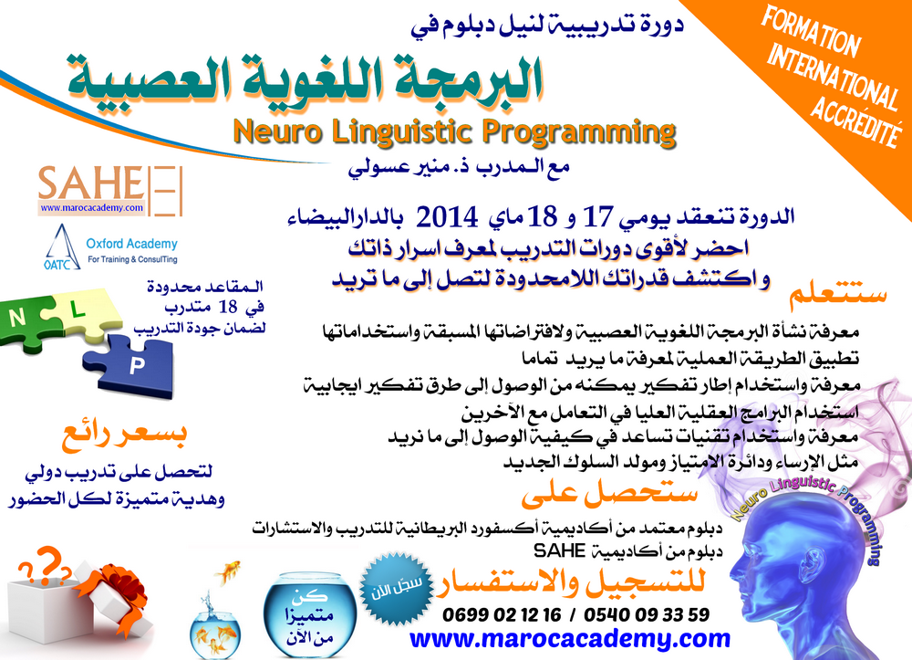 تكوين لنيل دبلوم البرمجة اللغوية العصبية في نسختها السادسة بالدارالبيضاء Success Academy For Human Engeneering